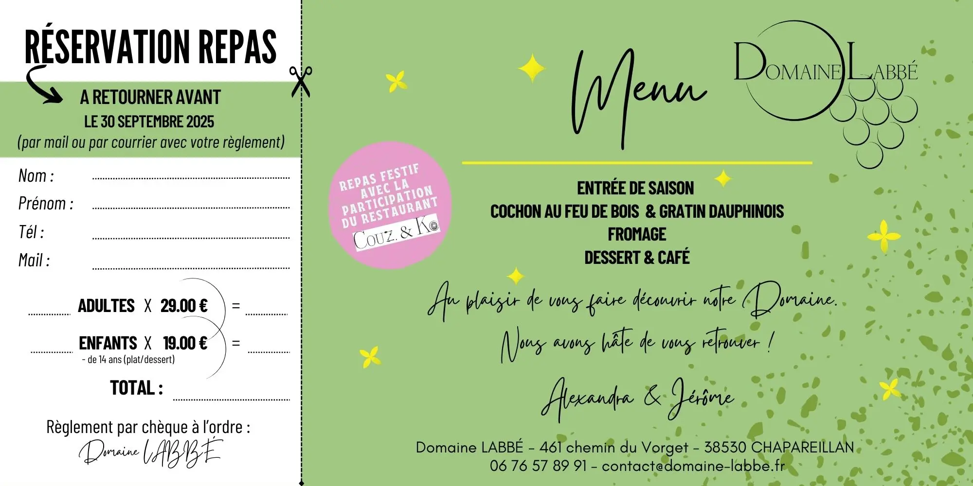 🍽️ Repas festif (sur réservation) en partenariat avec le restaurant Couz & Ko :